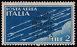 POSTA AEREA. Francobollo da Lire 2 azzurro con soprastampa in nero "Poste Italiane Imperia liberata 24-4-45". Trattino grosso fra "4" e "45". Nuovo con gomma