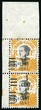 1c. on 5c. yellow-orange. Vertical pair. Double overload variety holding to triple. 10 known pieces. Superb. RR.
