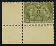 A fantastic corner of the sheet: 5 Dollar throne anniversary 1897, the key value with large left lower corner of the sheet, wonderful fresh colours, first-class perforated, perfectly mint never hinged of an of the most beautiful known examples for the highest demands. Outstanding quality! New photo expertize Vincent Graves Greene