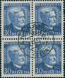 1932, Pro Juventute, 4 W. Complete, in perfect centric cancelled blocks of four, faultless choise copy condition, unfolded, expertized Dr. Hoffner with new abridged certificate with photo, Michel as block of four not listed, SBK PF 61-64 CHF 150,--.