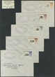 1968 (3 JU) fifteen matching 'Clement' covers from Stanley to Fox Bay, together bearing 1960-66 Birds set of 15 to £1 (½d as block of four, 1d vertical pair to satisfy 2d inland postage), cancelled/tied by Type PS3B c.d.s, with violet 'CARRIED ON/HOVERCRAFT S.R.N.6' oval h/stamp (Type H1) at upper left. B/stamped (excl. 2½d) with Type FD3 'FOX-BAY' c.d.s, dated 'JU 5 68.' Trivial cover blemishes, still fine and attractive group. The ½d & 2d from DLR printings, with the former showing 'H' flaw (R2/2) on lower right stamp