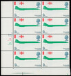 Concorde: Stamp Issues: Great Britain: 1969 Concorde 9d. cylinder block of eight, showing grey-blue cylinder omitted, stamps showing very dry print of the grey-blue (virtually omitted). S.G. 785 var. Photo