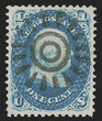 1c Blue (63). Well-centered with balanced margins, perfect strike of San Francisco cogwheel cancel, the central circles are precisely placed on Franklin's head, Extremely Fine and striking, with 2008 P.F. certificate, SCV $45