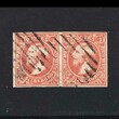 1858 Grand Duk William III 1sgr dull red in horiz pair, 4margin FU with barred cancel, small cut at the lower margin, various initials on the reverse. {U} [US2] (Start Price / Minimum Bid) = £62.40) (SG catalogue value = £340)