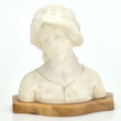 Büste eines holländischen Mädchens, Marmor auf geschweifter Onyxplatte, genrehafte Darstellung eines jungen Mädchens mit Haube, der Blick nachdenklich nach rechts geneigt, rs. auf linkem Schulterblatt sign. F. KOCHENDÖRFER FEC., zusätzlich am unteren Rand nummeriert, auf Sockelunterseite eingelassene Bronzeplakette der ORIGINAL HOFKUNSTANSTALT. MEDAILLE FÜR KUNST MÜNCHEN.KOCHENDÖRFER, H ca. 17 cm, um 1910