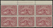 1935, Carriers by A. Foringer, 20c dark carmine, top sheet margin plate No.1 block of six (3x2), full OG, NH, VF, Unitrade C.v. CAD$262, Est. $100-$120