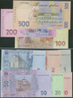 Ukraine, Lot 9 St.: 1, 2, 5, 10 und 50 Hryven 2004; 20 und 100