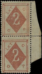 1899年威海衛跑差郵票第二次版2分票帶紙邊直雙連,原膠背貼/無貼,微黃上品。