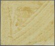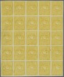 1870/72: 1 real deep yellow on medium white wove paper, a fine unused block of twenty-five (5 x 5), sheet margins with marginal framelines cut away, positions 46-50/82-86, with position 64 showing "Indented Left Vertical Frameline" flaw; position 66 with "Diagonal Scratch from Centre Circle to Base" Plate flaw and positions 83 with lower right corner shaved; the multiple with small hole at right of position 76, nevertheless of fresh colour with large part or unmounted og. A rare large multiple. Signed Bühler.