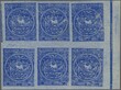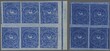 1871/72: ½ r. ultramarine on greyish wove, surface blued paper, an unused block of six, marginal from right of sheet, with large margins all round and showing portion of a further stamp at top left due to the misalignment of the stones, and a further ½ r. block of four in a deep shade showing portions of four adjoining stamps; both fresh and fine, large part og. Scott = $ 500+.