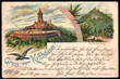 Farb-Lithokarte 'Gruß vom Kyffhäuser!' mit Ansichten des Kaiser-Wilhelm-Denkmals und der Rothenburg, gelaufen 1896 nach Lüdenscheid. Erhaltung II.
