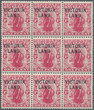 1910/1913, British Antarctic Expedition, Victorialand 1d. carmine, block of nine, centre stamp showing "No stop after LAND", mint original gum previously hinged (3) resp. never hinged (6 incl. variety)