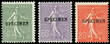 198-CI 2, 200-CI 1 et 203-CI 1, Semeuse Lignée, surch. SPECIMEN, TB (Catalog value 154,-)