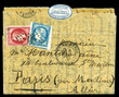 Rare affranchisement: 20c Bordeaux type I Rep 1 (N°44A) et 80c Lauré (N°32) Obl GC 41 + càd T17 sur lettre d' AIX EN PROVENCE le 6 janvier 1871 à destination de Paris encerclé par boule de Moulins. Au verso Càd ambulant de Marseille à Lyon, très jolie pièce, SUPERBE (certificat) Qualité: Oblitéré
