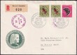 1953, J57-60, Einheit aus Kehrdruckbogen (Dreier-Streifen), portogerecht nach La Mesa Californien (USA), bildseitig mit "PASSED"-Zollstempel und rückseitig mit Ankunfts-Entwertungen. Speziell für den Kombinationen-Sammler aus Kehrdruck-Bogen, Unikat !
