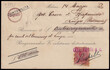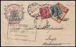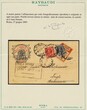 SCIOPERI DELLE POSTE DEL 1920 - SERVIZIO DI RECAPITO DELLA CAMERA DI COMMERCIO DI MILANO. Cartolina spedita da Milano il 14/5/1920 ed affrancata con una marca da 35 centesimi per il recapito (imperfetta nell'angolo destro) e diretta a Lugo ove venne affrancata per complessivi 25 centesimi con due francobolli ordinari "Leoni" per il porto della lettera semplice e li annullati col guller postale datato 26/5/1920. Certificato di garanzia Raybaudi (2003). Raro insieme