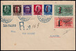 TIRATURA DI FIRENZE. Busta raccomandata spedita da San Mauro (Firenze) per città in data 10.2.1944 affrancata con la serie completa dei cinque valori della RSI + due Espressi da L.1,25 e L.2,50. Il valore Espresso da Lire 1,25 è della tiratura di Verona. Annulli di colore azzurro. Dettagliato certificato Sorani, 1989; firma B. Savarese Oliva