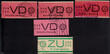 5 gestempelte Werte, dabei VD 1 in 2 Farbnuancen und mit PF I, VD 2