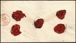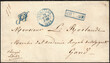 1857 Env de Bruxelles 10/3/1857 vers Gand. Griffes encadrées en bleu 'Chargé' et 'PP' annulant la griffe 'PD'. Cachets de cire et càd arrivée 10/3 au verso.'
