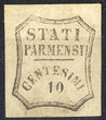 1859, Governo Provvisorio, 10 Cent. con varietà "O" piccolo, nuovo senza gomma, cert. Dante Bolaffi (Sass. 14c)