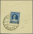 1934 (June 16): 'Saggio venduto come normale alla posta', Essay for the provisional overprint, thin figures '1 l. 30' in black on 1.25 blue, a fine used example of this rarity tied by "CITTA DEL VATICANO / 17.9.40" cds to large piece. One sheet of these proofs was sold in error, only a few used examples known to still exist, fresh and very fine. Signed A. Diena, cert. Raybaudi (2005) Sassone = € 25'000 for a used example, € 62'500 for a cover.