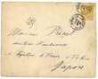 Baie d' ALONG, à bord du BAYARD (expédition de FORMOSE) : 1884 COLONIES GENERALES 25c Alphée-dubois obl. cachet français MARSEILLE Bes DU RHONE sur enveloppe avec teste daté " à bord du BAYARD, BAIE d' ALONG" pour TOKIO (JAPAON). Verso, cachet YOKOHAMA. Courrier militaire trés rare juste avant l' Expédition de FORMOSE. TTB