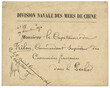 CANONNIERES FRANCAISES dans le PEIHO : 1870 Enveloppe Officielle DIVISION NAVALE DES MERS DE CHINE contresignée par L' AMIRAL / Chef D' ETAT-MAJOR pour le Capitaine du "FRELON" , commandant des CANONNIERES FRANCAISES dans le PEIHA. Exceptionnel. Superbe