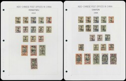 1900-40年代法國在華客郵新舊票及封片一組,置於36張貼片上,包括一些自膠州寄出及寄入的實寄封片。請預覽。