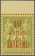 Zanzibar 1894/96: First issue set of 11 values, from ½ a. on 5 c. green to 50 a. on 5 fr. lilac, imperforate with "dentelure figurée" on "Bristol" card paper, all sheet marginal at top, fresh and very fine, a very scarce set Yvert = € 1'250+.