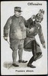 Antideutsche Propaganda-Karte aus der Zeit des ersten WK gegen Kaiser Wilhelm II., hier Karikatur-Karte 'Offensive Premiere attaque.', gute Erhaltung.