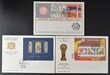 europ. Denkmalschutzjahr-Satz 1975, flämische Wandteppiche IV.-Block 1980 und Fußball-WM-Block 1982, sauber auf Balnko-Schmuck-FDC's mit ESST, Luxus. M€ 14,--