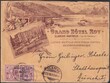 WAADT: GRAND HÔTEL ROY (Clarens, Montreux) 60A (2x) nach Zürich, oben wenig verkürzt. Wunderschönes, beidseitig illustriertes HOTEL-WERBE-KUVERT: "Lumière électrique dans chaque chambre +Asc. hydraulique!", sauber entwertet ab CLARENS: 23.APR.1897 Rückseitig LAC LEMAN (Genfersee) illustriert mit HOTEL-Stempel "Roy".