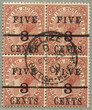 1891, 5 on 3 c on 3 d, red brown, with surcharge FIVE/BAR, lower right stamp with wide space between I and V, used, very fresh and desirable, ex Besancon, XF! Estimate 200€.