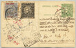 1925, 2A black and 1A9P overprinted with ONE ANNA red, registered ANCHAL CARD with 4p green, desirable and attractive letter, XF! Estimate 300€.