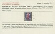 1944 - 50L violet with “fasces' overprint in lilac carmine, Florence printing, cancelled “24-03' 1944 in Florence. Rare. Cert. Andreoni and Bottacchi (Sassone 500/I - Euro 20,000)