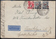 ST. INGBERT (Saar) / 3.3.48, very early air mail letter to the United States (zone 2, 25 Fr. ) with 5 Fr. (through opening above cut into) and 2 x 10 Fr. Overprint (possible since 26.2.48)