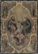 26 cm, rechts unten Farbabplatzer, Trocknungsrisse.