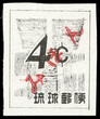 Ryukyus, 1958, U.S. Currency Provisional, 4¢ black, imperf trial color proof. With red Mihon overprint, large margins, bright and fresh, Very Fine. J.S.C.A. No. 48 var. Scott No. 48TC5; $700