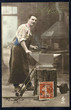 Frankreich: kitschige Gruß-Karte 'Vive St. Eloi', mit schickem Jüngling bei der Arbeit, um 1920, gebraucht, gute Erhaltung.