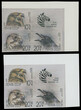 SEMI - POSTAL ISSUES: 1990, Zoo Relief Funds, 10+5k, 20+10k x2 multicolored, top right corner sheet margin imperforate block of three plus label, full OG, NH, VF, a forged block from the same corner is added for record and comparison, Est. $250-$300