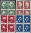 1945, blocks of four J113-116 with locate first days postmarks from WINTERTHUR, Zurich, SION, POSCHIAVO: 1. XII. 1945, upper stamps on document fixed, with full gum, excellent condition, SBK: 175.-