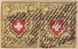 ST.FIDEN 1853 nach OBERBÜREN, und Oberbüren nach TABLAT SG (innerkantonaler doppelt verwendeter "Amtlicher Brief" aus dem Kt.St.Gallen mit Inhalt.) Portofreier Amtsbrief und korrekt 0.20 frankierte Nachnahme, Paar 16II T.1+2 E-LO mit gutem bis meist breiten Schnitt, interessante Frankatur mit postgeschichtlich spannender Verwendung! LP für den Heimtsammler