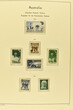 1928/2012: Australia & Territories, comprehensive mint collection in six Lighthouse hingeless albums, complete for the available spaces from the 1928 Fourth National Stamp Exhibition souvenir sheet through to the 2012 Christmas self adhesives, with a few earlier issues, the single stamps complemented by souvenir sheets and some larger panes, highlights include 1928 Kookabarra Mini Sheet (Gi MS106a), 1932 5s. Harbour Bridge (Gi 143), pair of 1934 "KOOYONG" Stamps (Gi 149/149a), 4 varieties of the 1938 3d King George VI (Gi 168,b,c,ca), 1938 Robes Thick & Thin paper sets (Gi 176-178a), 1942 Coat of Arms set (Gi 224a-d) (1942), 1946 BCOF set (Gi J1-7a), Explorers, both Pre Decimal (Gi 355-60) and Post (Gi 398-403), etc., also with one album of Australian Antarctic Territories complete for 1957-2012, and Cocos (Keeling) Islands for 1963-2012, our review found only fresh unmounted stamps, an excellent opportunity to acquire a fullsome collection of this period, filled with fresh and carefully chosen stamps, overall very fine