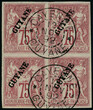 N° 14, 75c carmin bloc de 4 càd Cayenne 12 nov 92, superbe, signé Calves