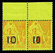 N°4D et 4F, 10 sur 20c brique sur vert: Types V et VII se tenant en paire bord de feuille, fraîcheur postale. SUPERBE. R.R. (certificat) Qualité: ** Cote: 4200 euros