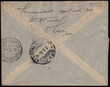 EMISSIONE LOCALE, SOPRASTAMPA IN PIASTRE E PARA. Lettera raccomandata spedita da Valona a Spezia in data 28.02.46 affrancata con un cent.5 soprastampato "Valona 10 Para 10" + un cent.10 soprastampato "Valona 20 Para 20" + un Lire 1 soprastampato "Valona 4 Piastre 4", con annullo in cartella "verificato per censura Valona". Annullo di arrivo al retro