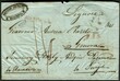 "TAGANROG", large adornment two ring cancel, clear, reverse on folded letter 1846 to Italy, in front oval "odessa", red one-line cancel "T. A. 3", letter inside partly reinforced (repaired)