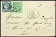 1870, 5 C. Bordeaux, large margins all around, perfect with 20 C, perforated, corner fault, clear "3112", two ring cancel "RENNES-26. September 71",' small superb letter to Paris (Michel lots 160,-)
