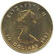 Canada: 1987, 10 Dollar 1/4 Oz Gold, Maple Leaf, 7, 75 large fine, condition st (in Foil welds)