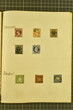 Stamp Collecting 1863: "The Postage Stamp Collector's Pocket Album with Complete Table of all the Known Stamps", 2nd Edition Enlarged and Corrected to the present time; issued by Johnson and Rowe of Warwick Square, Paternoster Row, London / 1863", with all the original stamps still intact and in a remarkable state of preservation, including genuine 1840 Great Britain 1 d. black used, Alsace 1871 set of seven used with duplication, Bavaria 1 kr. rose unused (2), 12 kr. red and used together with other German States and postal stationery cut-outs, Denmark 1854 8 sk. green unused (2), Finland 10 k. and 1860 10 k. unused, 1866 5 p. unused, France with 1849 Cérès 40 c. used (2), 1 fr. carmine used (7), India 1866 6 a. purple postal Fiscals used (2), Japan 1871 imperforate 48 m. brown used, 100 m. blue unused and used, 200 m. vermilion unused, perforated 100 m. blue unused and 'Mihon' Specimen; Luxemburg from 1859 used or from 1859 unused, Naples 1860 ½ tor. used, Netherlands 1852 issue and duplication used, New Brunswick 1851 6 d. yellow used, Norway 1855 4 sk. used (2) and Oscars, Nova Scotia 1851 1 d. used, Papal States 1852 50 baj. and 1 sc. used, Peru with PSNC reprint 1 r. in blue and in green, 2 r. in blue and in green; Poland with 1860 10 k. unused, Romania, Sardinia with 1851 5 c. black used, 1853 20 c. blue used, 1855 3 l. bronze used, Turkey 1863 issue unused, Sicily to 50 gr., Spain and Philippines, Tuscany with 1 q. black used (2), 1 so. unused and used, USA with 1847 5 c. used, 10 c. black used (2), Württemburg 1873 70 kr. used, and early reprints of stamps unavailable in England at time such as US Local Posts, Pony Express etc., also another early album but hand-made and both album and adhesives not as fine. Please Note: On the instructions of the family, the stamps are to stay where they are and cannot be examined by removal due to the method of original mounting with cotton. This is the earliest complete album this describer, with over 50 years in the philatelic trade, has ever encountered.